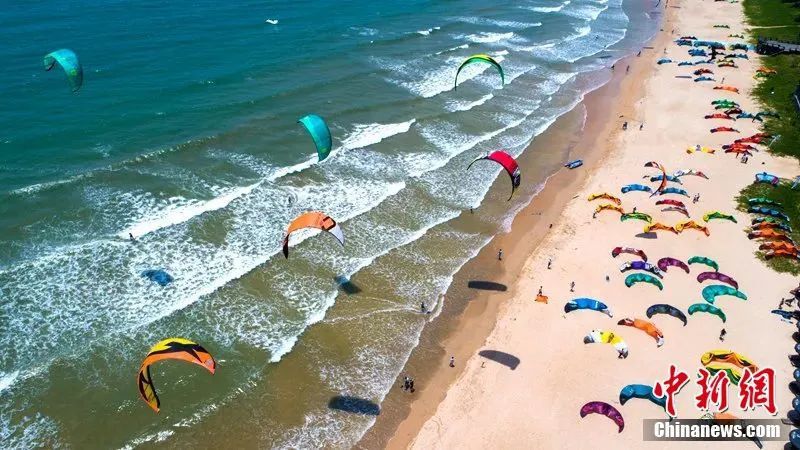 图为琼海博鳌湾海域上颜色各异的风筝在海面上“起舞”。骆云飞 摄