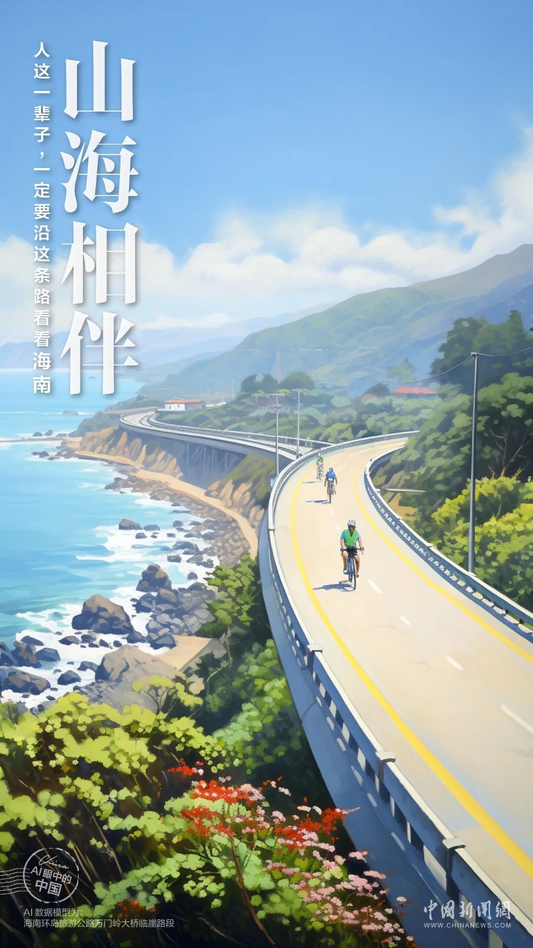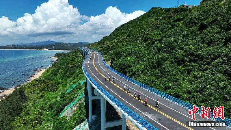 图为海南环岛旅游公路万门岭大桥临崖路段吸引游客骑行打卡。杨师忠 摄