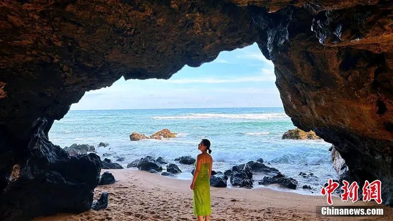 图为万宁山钦湾燕子洞悬崖秘境吸引游客打卡。符宇群 摄