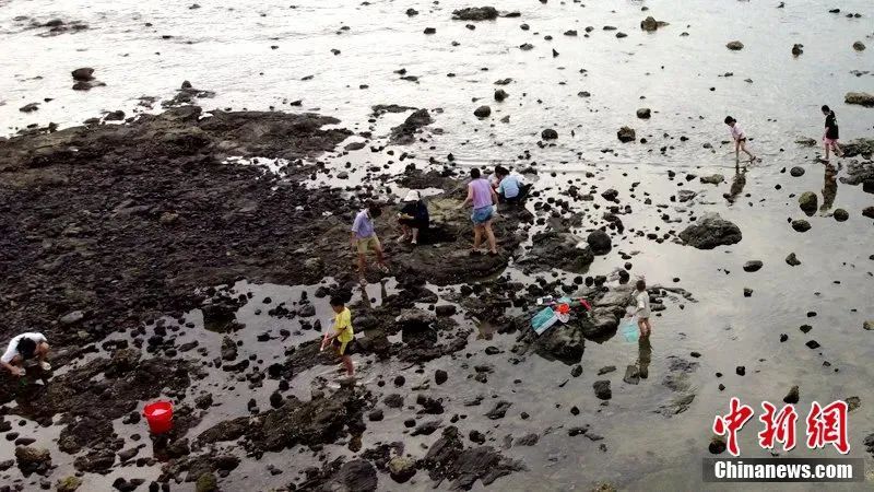 图为游客在澄迈道伦湾海域体验“赶海”乐趣。陈英清 摄