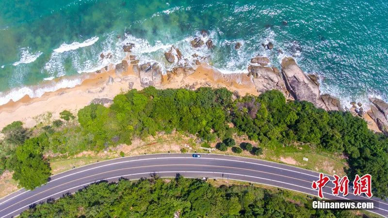 图为航拍位于海南万宁的滨海旅游公路。骆云飞 摄