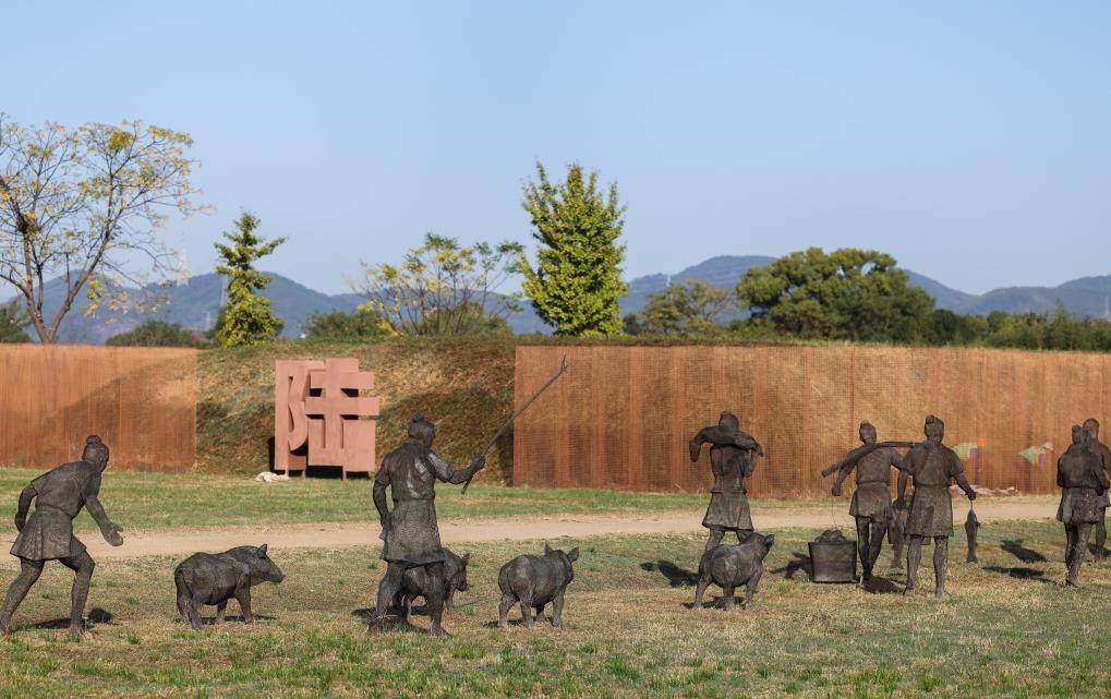 11月7日拍摄的良渚古城遗址公园内的陆城门遗址(新华社记者徐昱 摄)