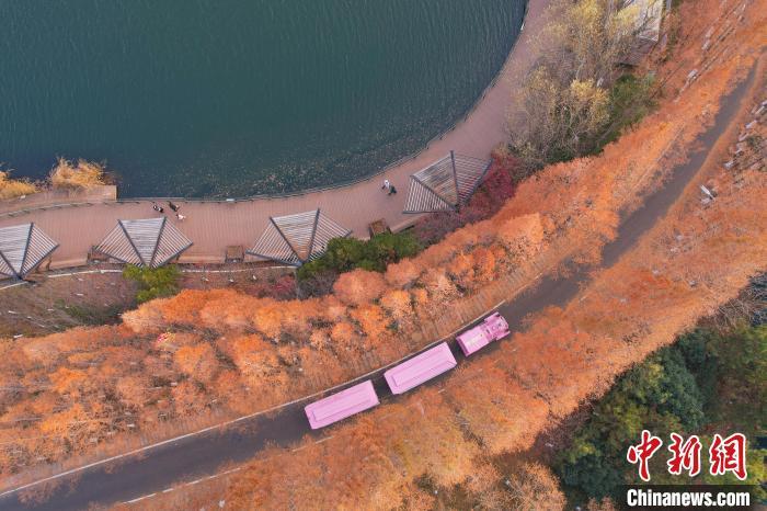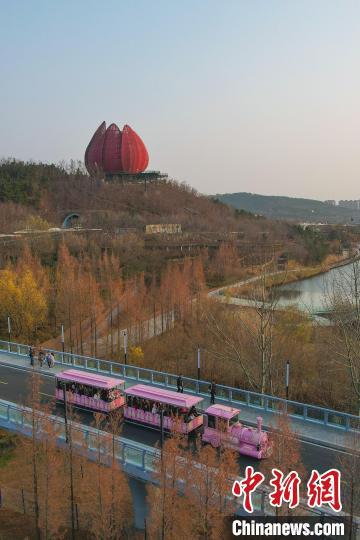 12月9日,初冬时节,位于山东省青岛市李沧区的世界园艺博览园景区,道路两旁水杉树层林尽染,游览火车穿梭其中仿佛进入了一个童话般的梦幻世界,吸引了大批游客前来。