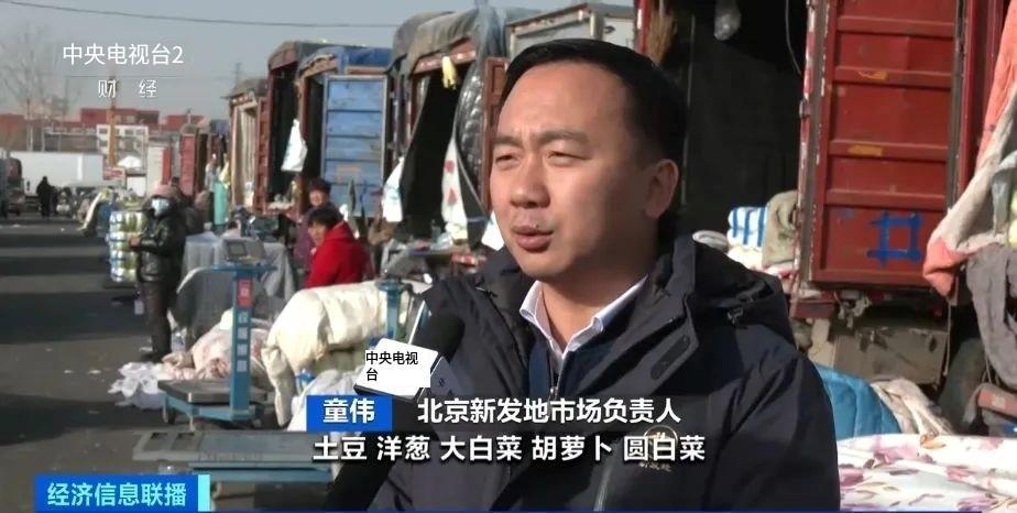 北京新发地市场负责人 童伟:冬储菜主要品种有土豆、洋葱、大白菜、胡萝卜、圆白菜,每天总的供应量不低于1万吨,整体上讲供应十分充足,价格处在低位运行的状态。