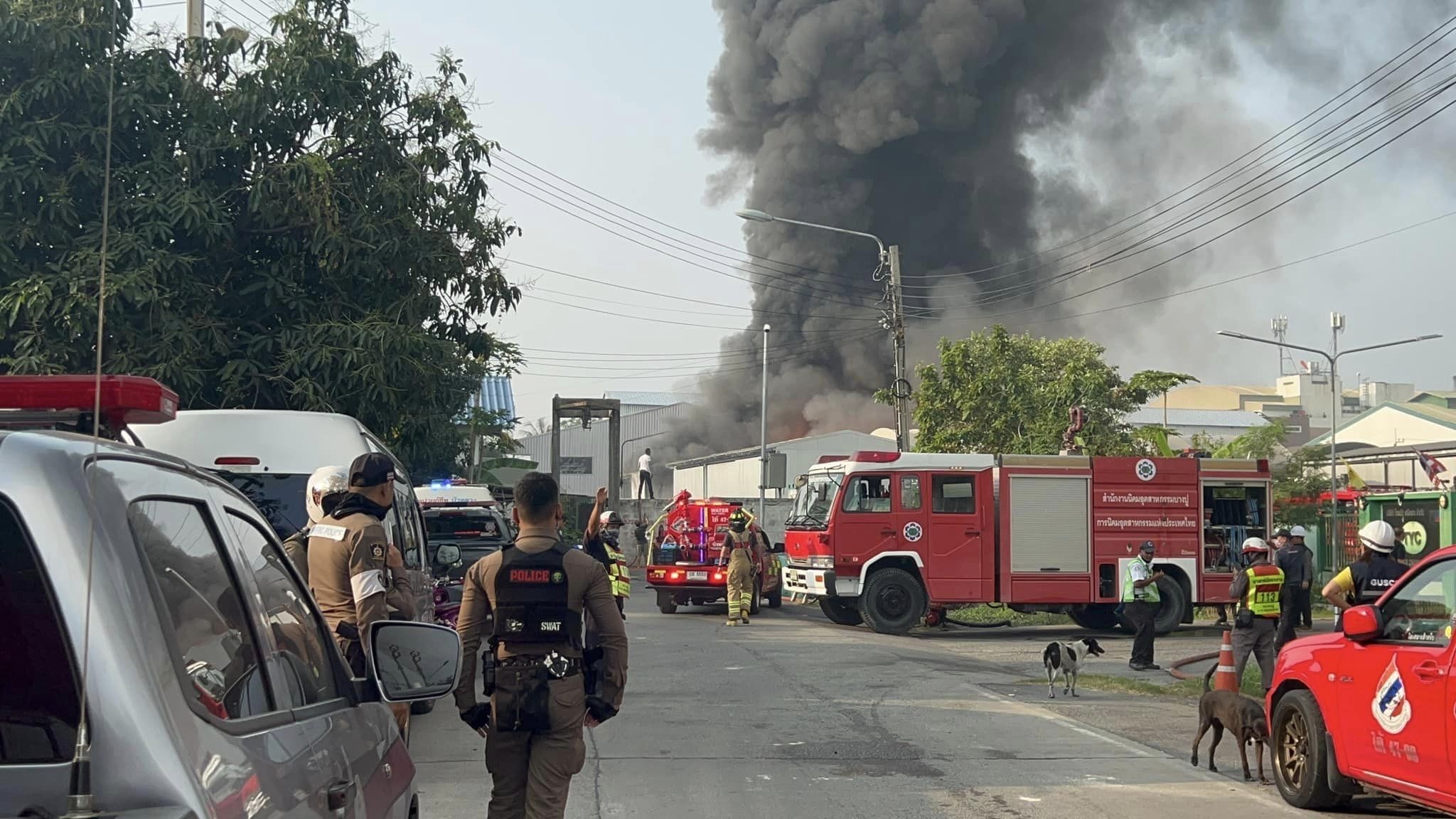 当地时间11日7时30分左右,泰国中部北榄府邦浦工业园内一座化学品仓库发生火灾。