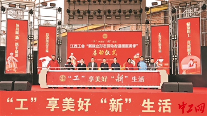2023年11月16日,江西工会“新就业形态劳动者温暖服务季”启动仪式在赣州市举行。
