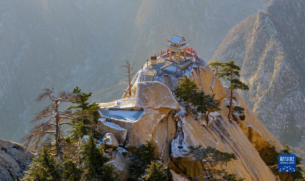 12月12日拍摄的雪后华山下棋亭风光。新华社发(赵哓罡摄)