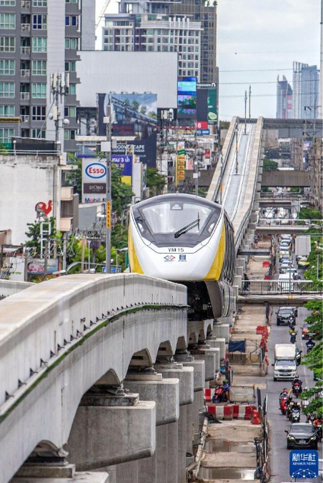 这是9月14日在泰国曼谷拍摄的“黄线”列车。