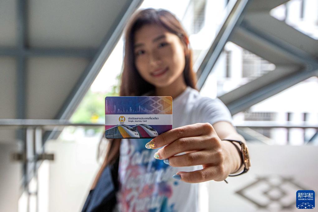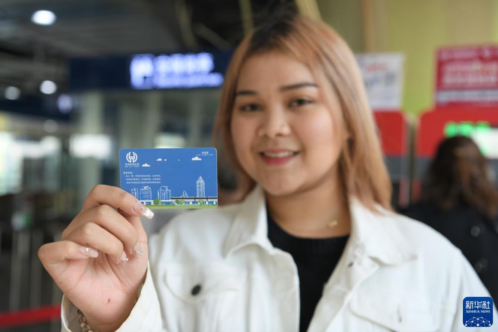 11月8日,在安徽省芜湖市,安徽商贸职业技术学院电子商务学院的泰国留学生刘丽阳展示芜湖轨道交通单程票。