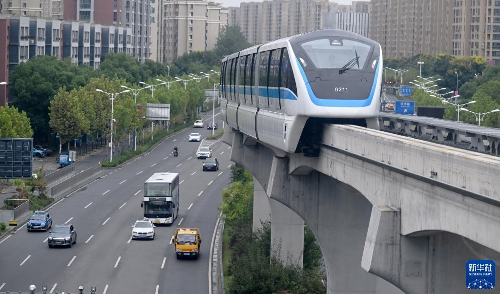 这是单轨列车行驶在安徽芜湖市区的景象(2022年9月16日摄)。