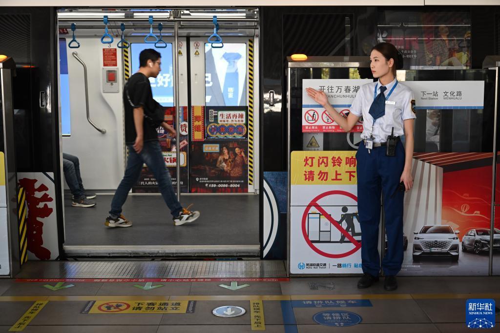 9月18日,站务人员在安徽芜湖市鸠兹广场站工作。