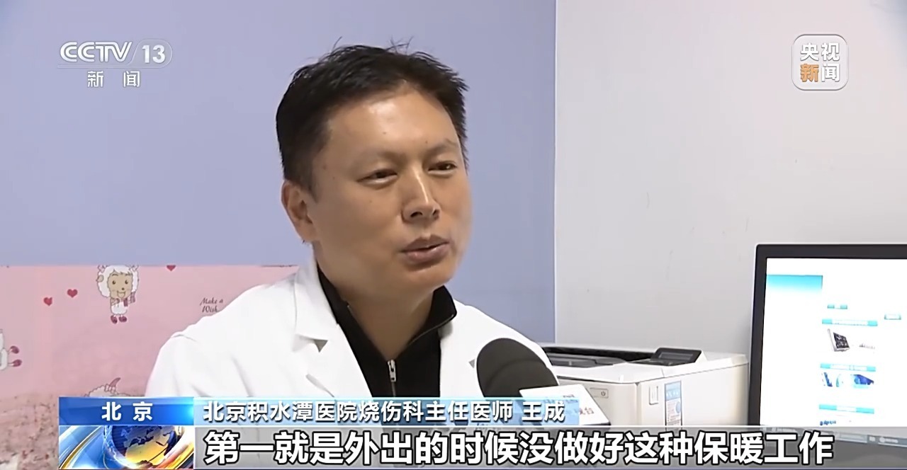 北京积水潭医院烧伤科主任医师 王成:冻伤原因主要就是外出的时候没做好保暖工作。冻伤病人早期会疼痛、发麻、肿胀,厉害的会起大水泡,甚至还有那种发黑坏死的。