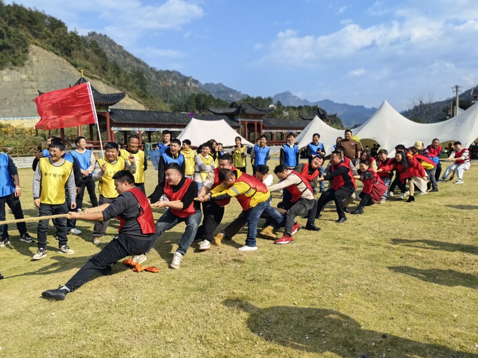 团建拓展活动中,大家在教练的带领下,相互配合、相互协作,以团结奋斗、拼搏进取的昂扬精神完成了拔河、单腿火车、一反常态、穿花裤、数7等趣味小游戏,整个活动在大家的欢声笑语中结束。