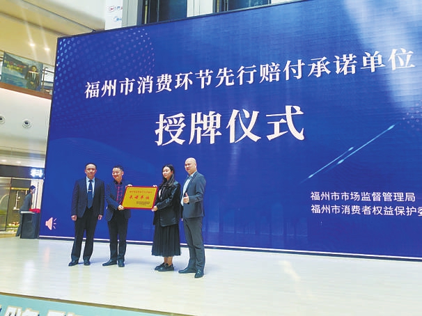福州市消费环节先行赔付承诺单位授牌仪式。