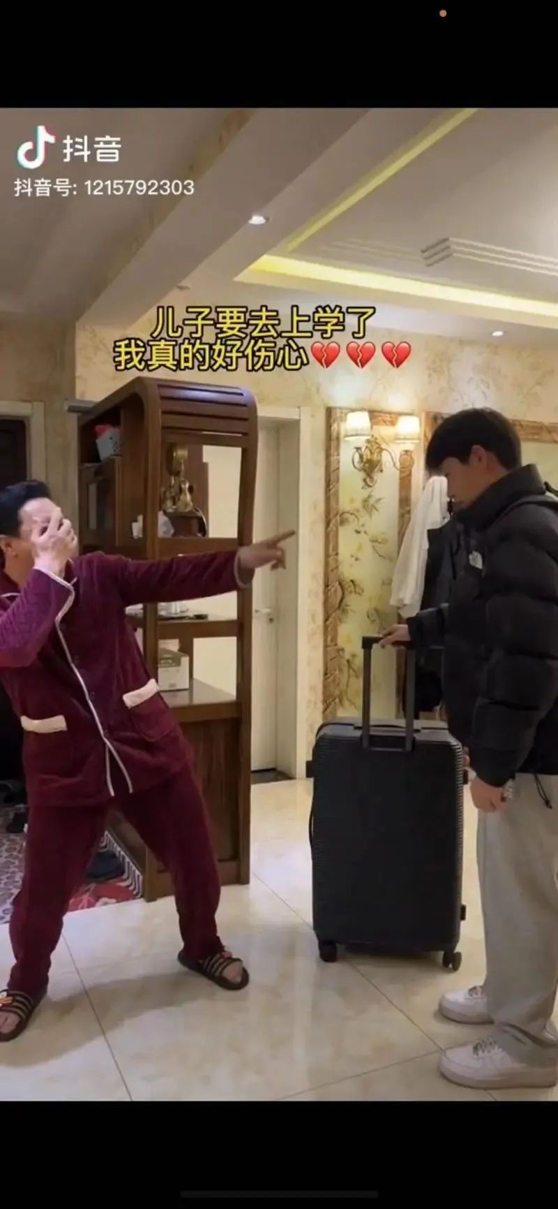 在和儿子合拍的视频中,没有高高在上的“爹味”,而是像同龄人一样闹着玩。