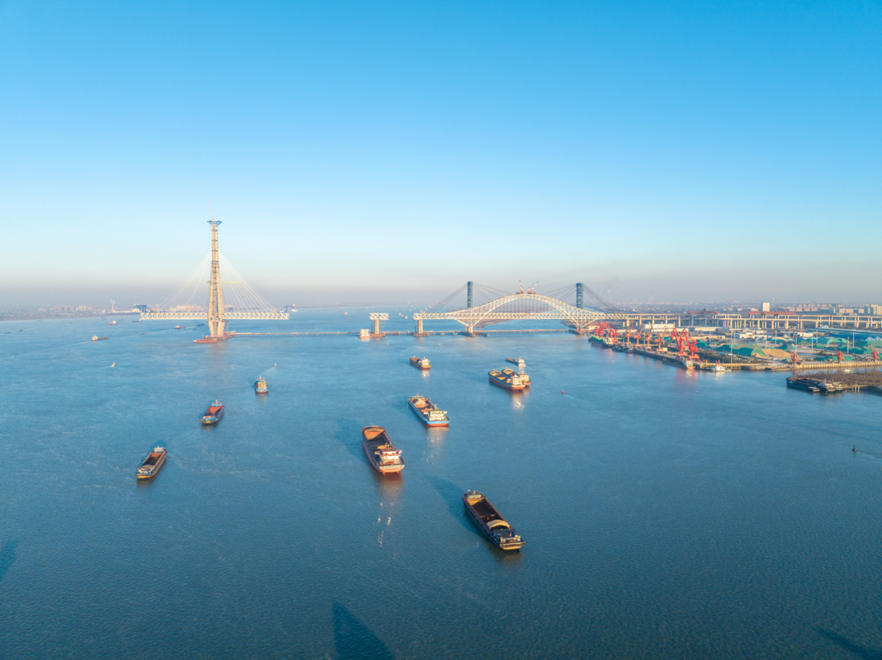 常泰长江大桥是世界首座集高速公路、城际铁路和普通公路为一体的过江通道,连接江苏常州与泰州两市。为满足沿线港口、码头运输专用航道通行需求,大桥除主跨1208米的主航道桥外,分别在泰兴天星洲和常州录安洲设置了专用航道桥,配合主航道桥共同服务长江黄金水道。