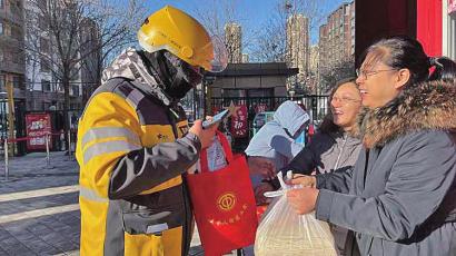 王舍人街道开展暖“新”行动为“快递小哥”发放暖冬礼包。
