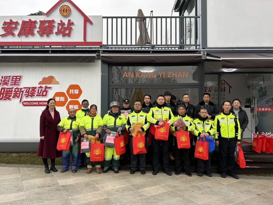 位于古里镇淼泉的“安康驿站”,也在寒潮到来之际做好了充足的准备。一大早,驿站的志愿者就对站内的设备进行了全面的检查,确保所有设施都能正常使用,同时细心地在驿站门口铺上了防滑草垫,保障来往的人员安全出行。据了解,古里镇总工会还为交警、环卫工人等户外劳动者准备了“暖心包”,内含护手霜、护膝、手套、耳罩等防寒物品,为他们的一线工作提供了爱心帮助。