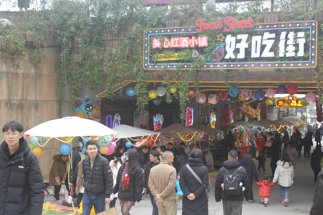 2023年12月29日晚,第八届重庆文化旅游惠民消费季启幕,围绕“市民音乐节”“山城夜精彩”“沉浸式体验”等重点领域,推出了11项特色主题活动、N个区县分会场活动。记者12月31日在涪陵区美心红酒小镇景区看到,出来游玩的游客摩肩接踵,家庭游、亲子游等随处可见,游客们或带着孩子在“3元钱乐园”畅快游玩,体验游乐设施设备带来的趣味和快乐;或者在香溪廊桥、彩色S型公路、鸡公山上一边拍照打卡,一边感受乐园里人声鼎沸的节日氛围,整个景区一派熙熙攘攘的新年欢乐景象。中午时分,气温上升,美心红酒小镇迎来市民出游高峰,从主城方向自驾抵达景区的私家车连绵不绝,排成长龙。游客们在山下鸡公山游乐园玩够了之后,许多来自主城的市民选择乘坐从景区通往山顶乡村的超长索道,从空中俯瞰长江美景与美丽乡村。有的涌到山顶的泡桐村坐重庆海拔最高的摩天轮,感受云雾里“山高人为峰,一览众山小”的登高意趣。有的坐在乡村餐馆体验农家菜肴:品尝柴火鸡、转转火锅、土猪肉刨猪汤等美食,有的到深入到振兴乡村市集购买土鸡土鸭、新鲜蔬菜带回家……。