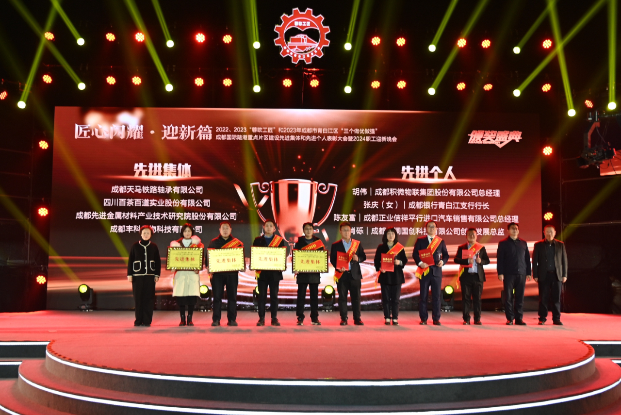 近日,成都青白江区举办2022、2023年“蓉欧工匠”和2023年成都市青白江区“三个做优做强”成都国际陆港重点片区建设先进集体和先进个人表彰大会暨2024年职工迎新晚会,对2023年评选出的60名“蓉欧工匠”进行集中命名,同时对2023年度成都市青白江区“三个做优做强”成都国际陆港重点片区建设先进集体和个人进行表彰。