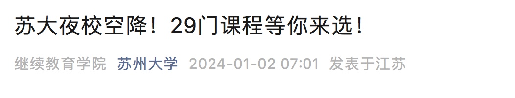 2024年1月2日,苏州大学发文称,经过一段时间的精心筹备,苏大夜校正式上线。