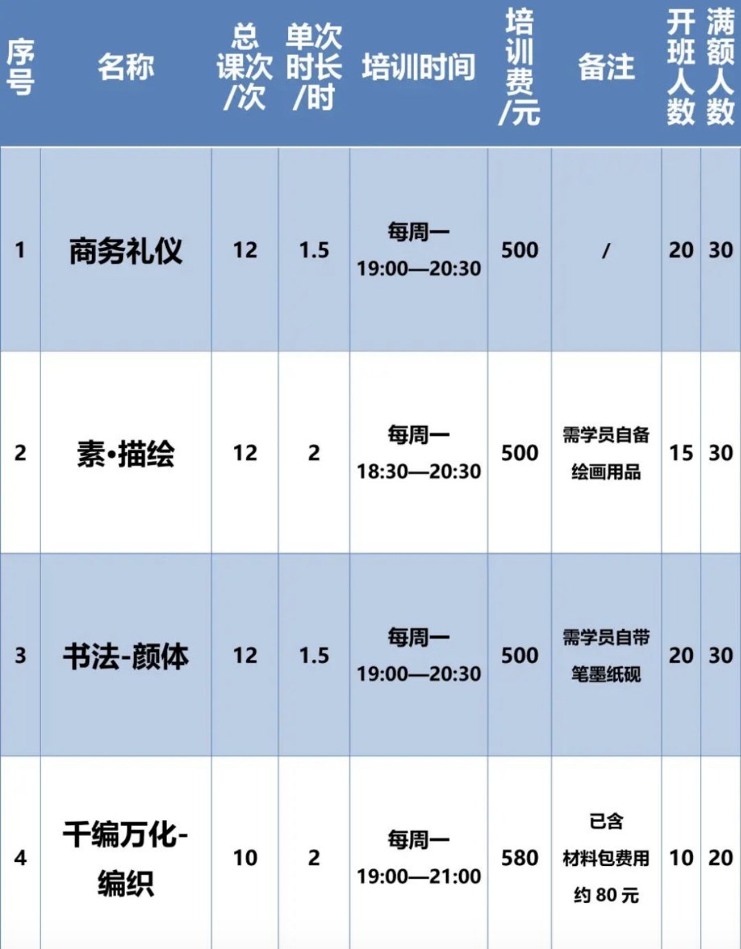 据长江日报消息,武汉“青年夜校”则以每周1—2次的频率于每周一至周六18:00—21:00开课,目前课程涵盖书法、朗诵、绘画、舞蹈、魔术、手工制作、乐器表演、中医知识、羽毛球、乒乓球等。
