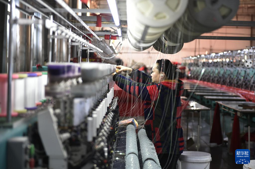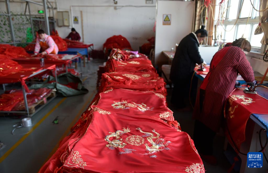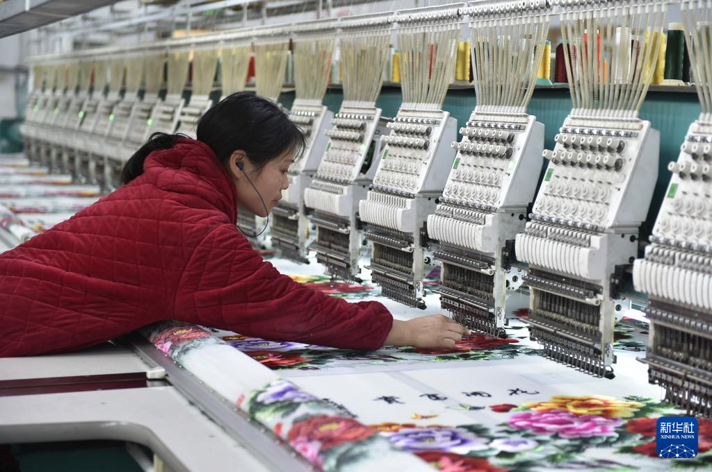 1月9日,汝州市汝绣产业园一家机绣企业的工人在生产车间内作业。新华社记者 鲁鹏 摄