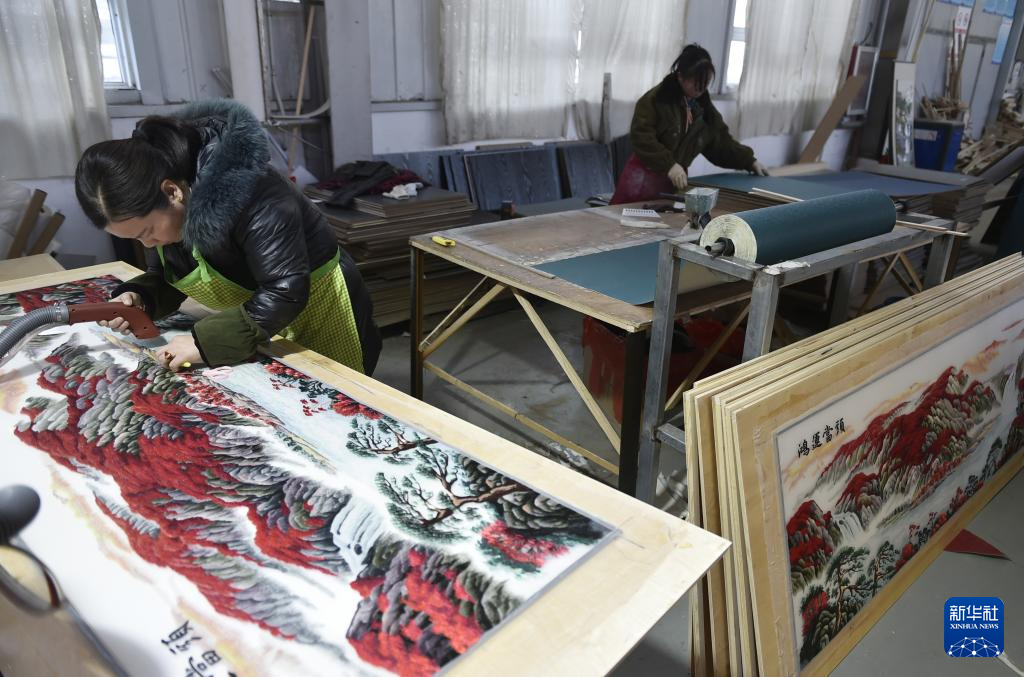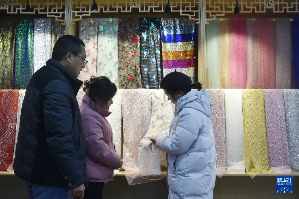 1月9日拍摄的汝州市汝绣产业园一家机绣企业的产品展厅。新华社记者 鲁鹏 摄