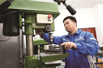 凭借扎实的钳工基本功,姜丛帅主动承担起对新入职员工和实习人员的基本功培训工作。他利用模拟产品开展专项训练,让每一位学员都有一技之长,实现短时间内人员快速成长。