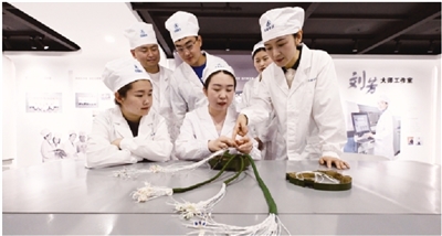 “刘师傅,我扎完线了,产品放工位上了,您有时间来看看我这线扎得对吗?”刘芳大师工作室就在生产车间里,她在工作室研究难题时,不时有徒弟来询问各种问题。“好,我这就来。”刘芳回答说。扎线是基本功,她非常注重要求徒弟先练好基本功。