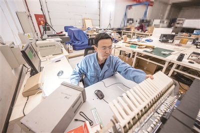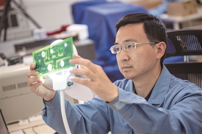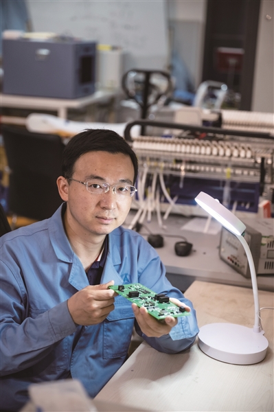 实验室内,陈曦正在对元件进行贴装
