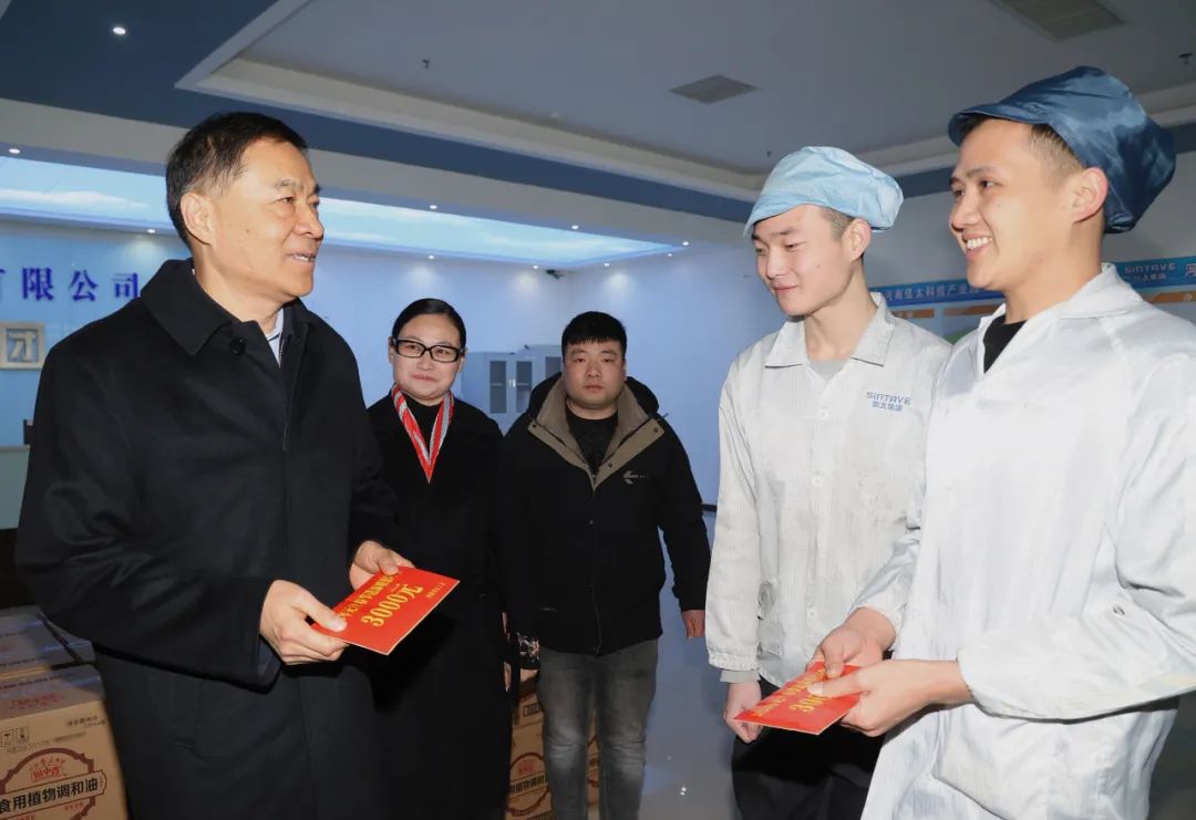 河南省总工会一行到信太科技(集团)股份有限公司制造车间,实地查看企业生产经营情况,询问企业生产经营过程中遇到的困难和问题,仔细了解职工的工作和生活状况,为职工代表送上慰问品,提前祝愿他们度过一个愉快的春节,叮嘱严寒时节多加衣物、注意保暖。要求企业工会组织发挥桥梁纽带作用,切实履行各项职能,调动职工的积极性、主动性和创造性,激发与企业同心同行的磅礴力量,引领广大职工把自身发展融入推动企业高质量发展的火热实践中。