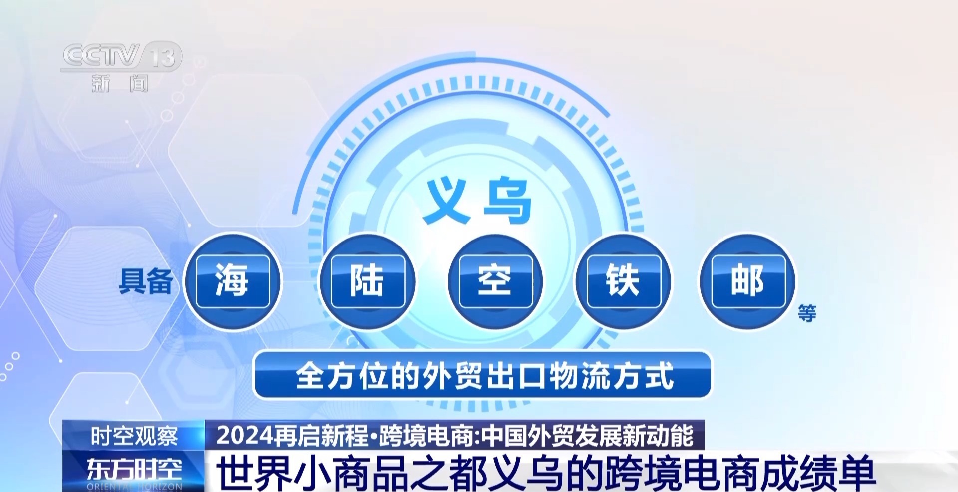 总台央视记者 叶奂:一件商品从义乌运往世界各地,有几种方式呢?可以是公路、可以是铁路、可以是邮路、可以是空运,还可以是海运,全方位、多元化的物流体系,让“中国制造”从这里通达全球。