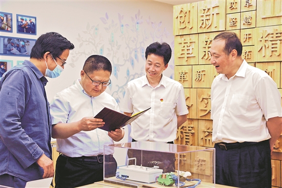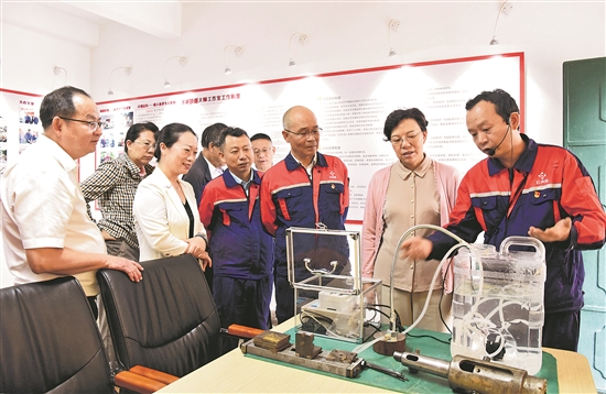 云南省总党组书记、常务副主席王宏(左二)深入企业生产一线了解产改进行情况。