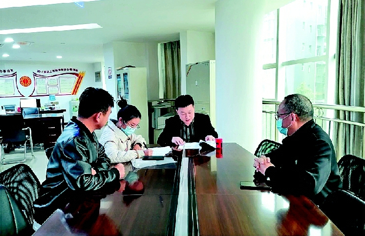 肖鲁(中)正与同事商讨职工维权事宜。受访者供图
