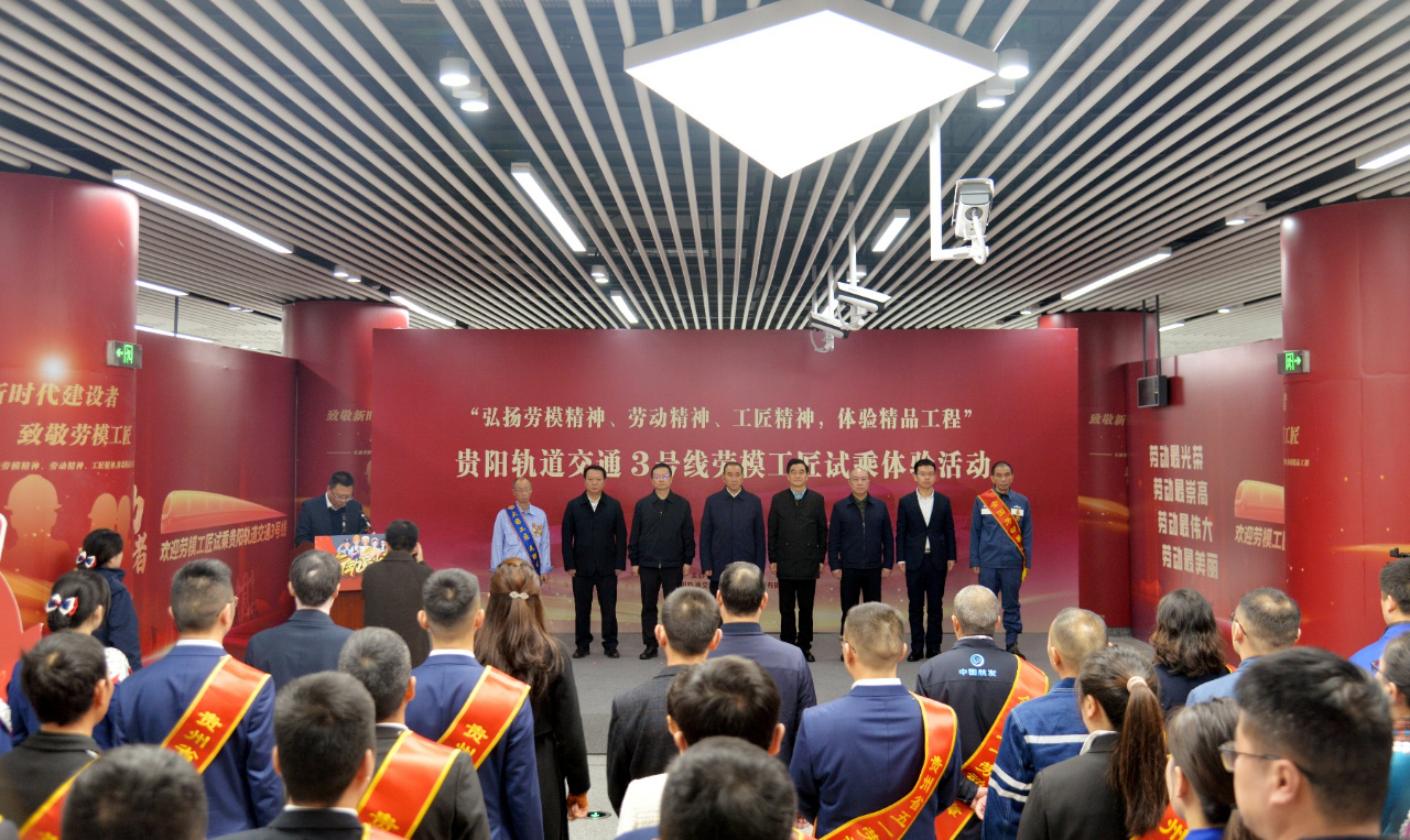 据介绍,劳模工匠主题车站和劳模工匠试乘体验活动以“致敬新时代建设者、致敬劳模工匠——弘扬劳模精神、劳动精神、工匠精神,体验精品工程”为主题,由贵州省总工会和中国中铁贵阳轨道交通3号线指挥部联合打造,旨在让劳模工匠代表体验贵阳轨道交通3号线建设成果,体验城市建设精品工程,进一步激发全省广大职工以劳模工匠为榜样,踔厉奋发、勇毅前行,为推动贵州高质量发展实现新跨越、奋力谱写中国式现代化贵州实践新篇章贡献智慧和力量。
