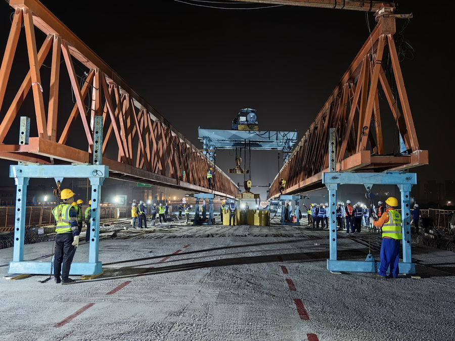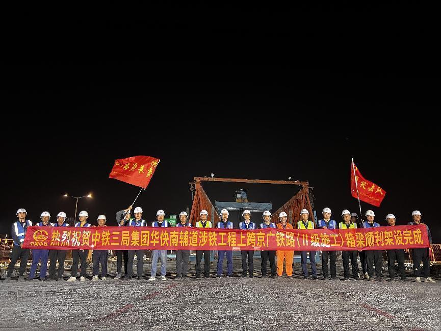 1月18日凌晨,随着架桥机稳稳地将最后两片长40米,重140吨的箱梁,架设在跨京广线14—15号墩上,中铁三局广东公司承建的华南快速干线南辅道上跨京广线箱梁架设圆满完成,为后续通车奠定了坚实的基础。