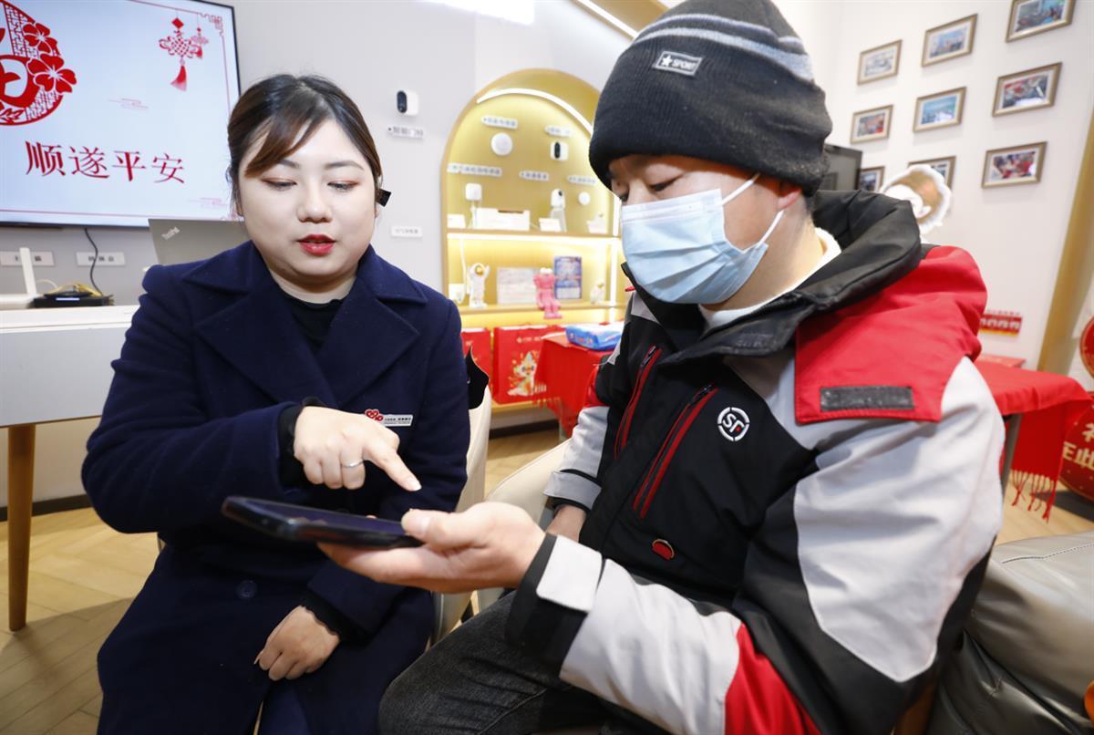 1月17日11时,在中国联通汉口香港路营业厅工会驿站,一场反诈宣传知识讲座正在举行。讲座结束后,营业厅工作人员为户外劳动者送上包含保温杯、反诈宣传手册、手写春联等温暖物资的爱心礼包。