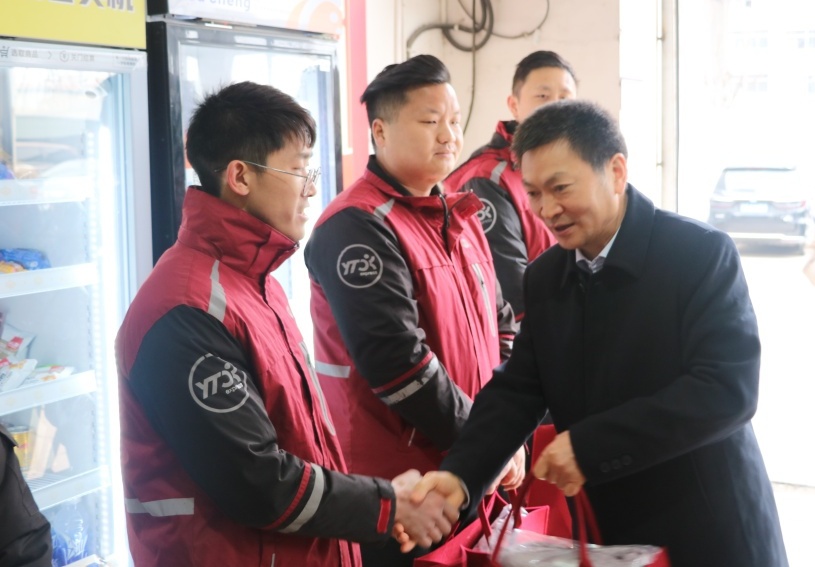 新就业形态劳动者是城市美好生活的创造者、守护者。戴建平一行来到圆通义桥网点(杭州斌安物流有限公司),看望慰问奋战在一线岗位的快递小哥们,戴建平与快递小哥亲切交谈,鼓励他们立足岗位热情工作、踏实工作,努力在平凡的岗位上创造出不平凡,并送上了慰问品和新春祝福。