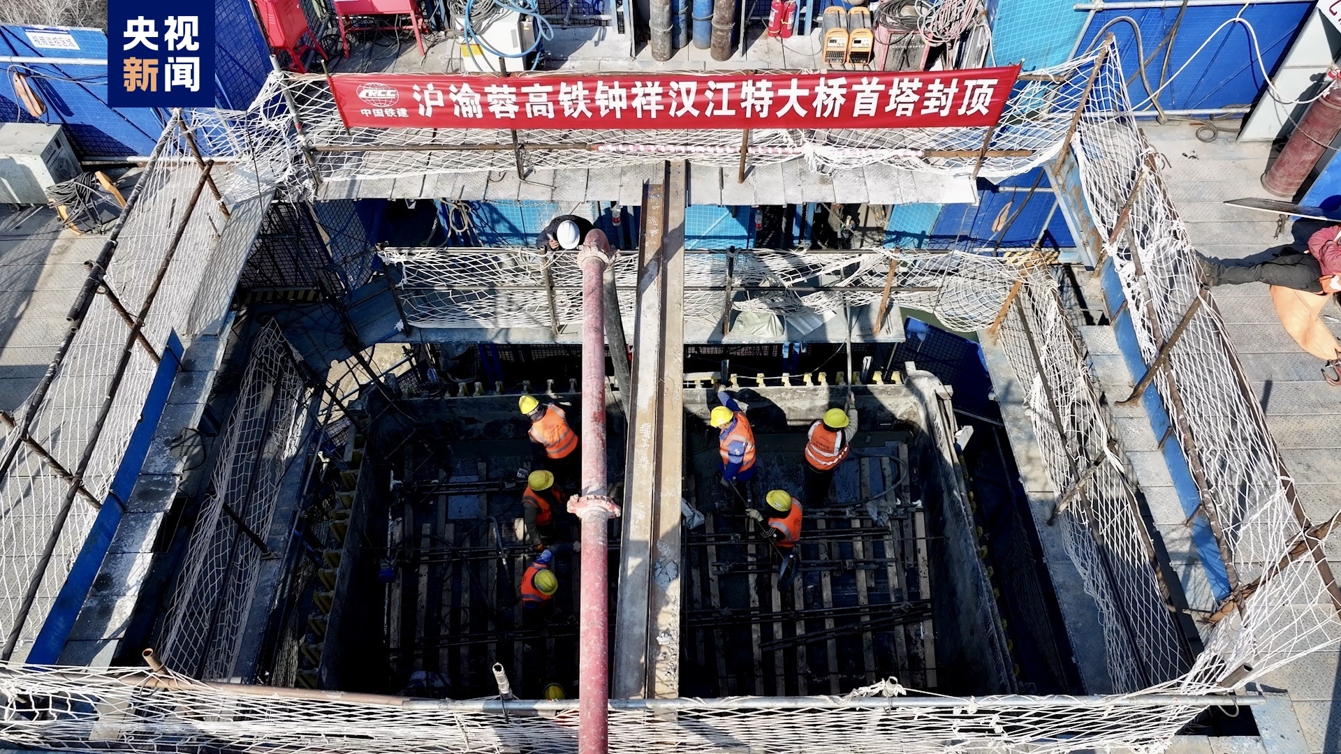 原标题:突破性进展!沪渝蓉高铁钟祥汉江特大桥首塔封顶