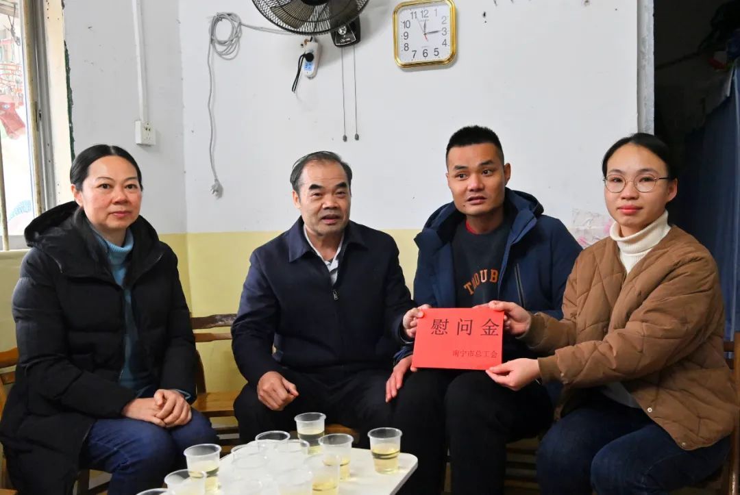 南宁市总工会党组成员、副主席谭靖参加慰问。(南宁市总工会)