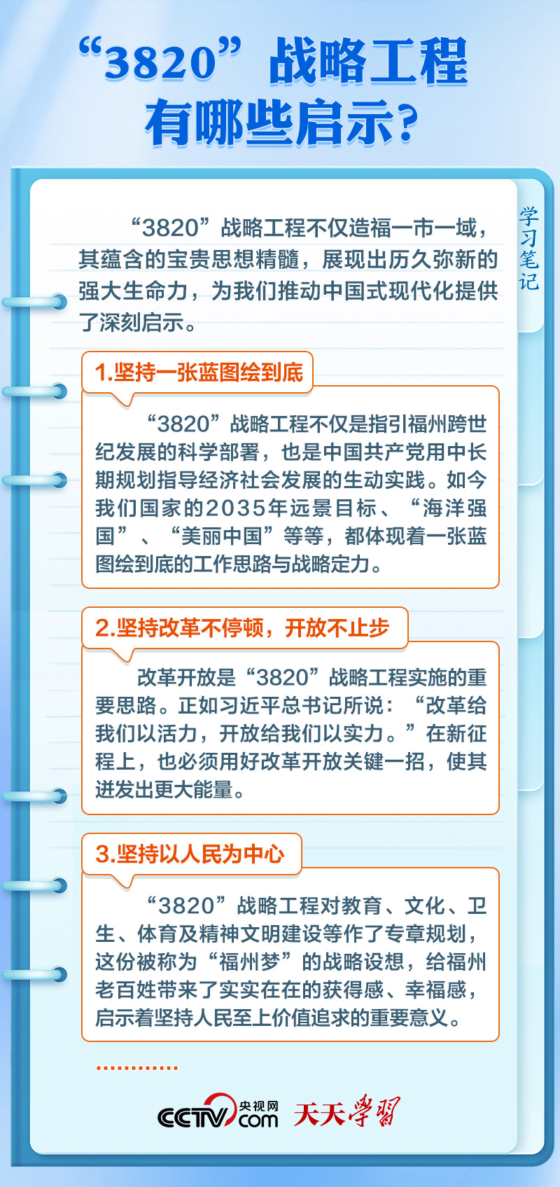 三十多年来,福州坚持“3820”战略工程思想精髓不动摇,一张蓝图绘到底,不断开创现代化国际城市建设的崭新局面。“3820”战略是如何制定的?其思想精髓和时代价值有哪些?央视网《天天学习》栏目与您一起学习领悟。