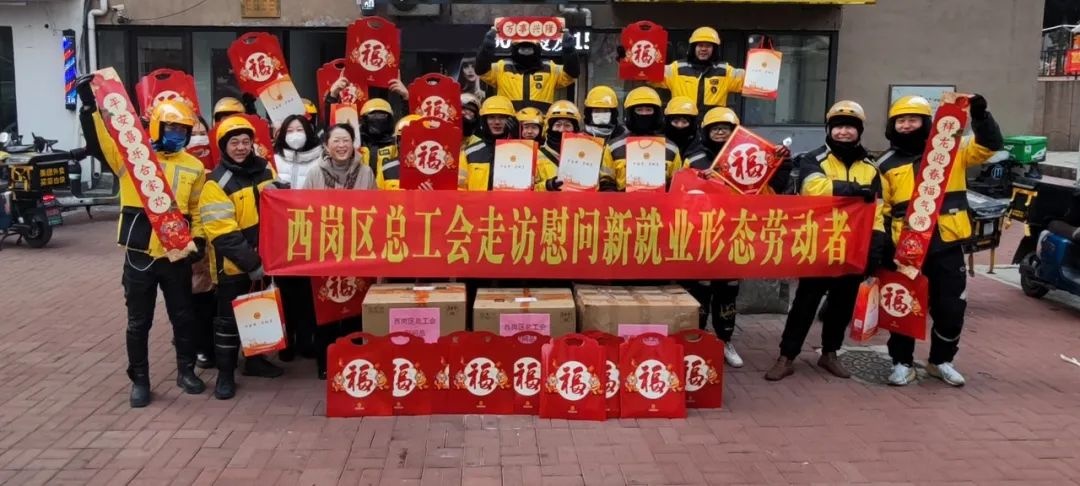随着龙年春节的临近,为切实做好新就业形态劳动者关心关爱工作,大连市西岗区总工会为辖区内坚守岗位一线的新就业形态劳动者送去暖心物资和新春祝福。顺丰、京东、德邦、美团、饿了么等9个站点的242名新就业形态劳动者收到了来自西岗区总工会的关怀。