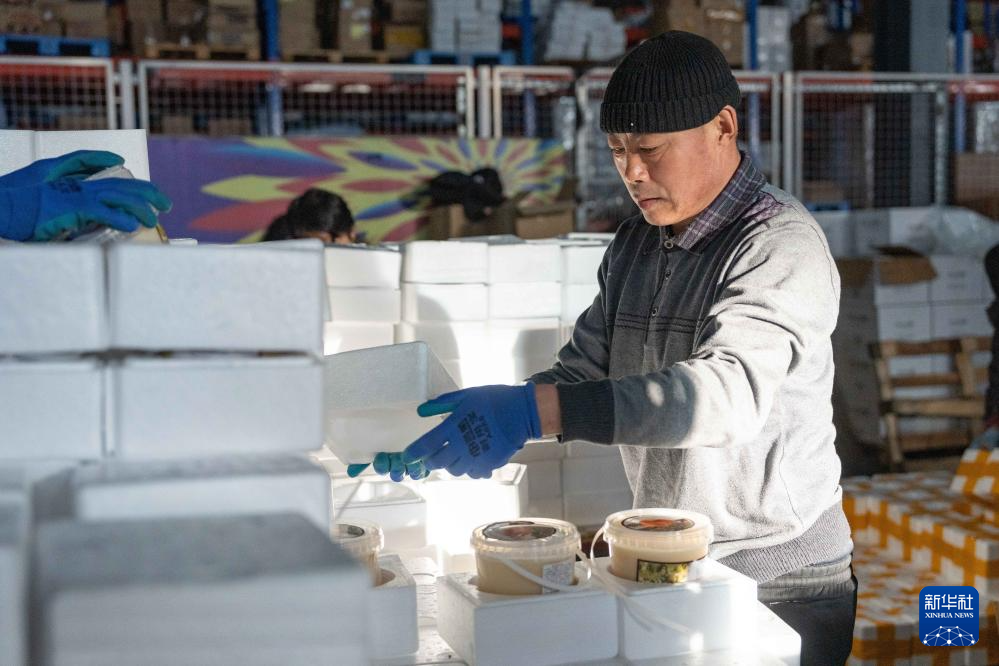 1月31日,在中国(黑龙江)自由贸易试验区黑河片区,黑河跨境电商园区智能仓储物流中心的工人在打包俄罗斯蜂蜜。新华社记者 谢剑飞 摄