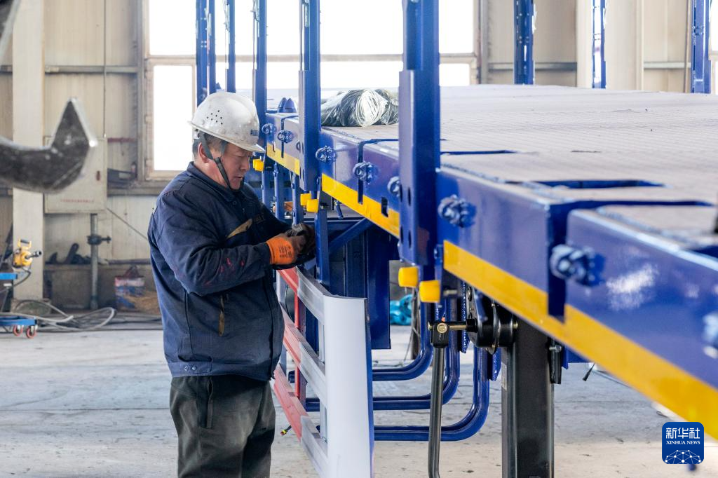 1月31日,在中国(黑龙江)自由贸易试验区黑河片区,黑河市利源达专用车制造有限公司的工人在进行半挂车生产作业。新华社记者 谢剑飞 摄