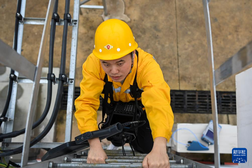 2月1日,“捕风者”何润翔进行寻找信号干扰源作业。新华社记者 曹祎铭 摄