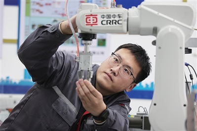 走进中车唐山公司车体事业部智能打磨车间,一台台智能机器人正在有条不紊地进行车体零部件的搬运和打磨作业,机器的轰鸣和金属的撞击声不绝于耳,空气中弥漫着金属的气息,仿佛在演奏一首工业生产的交响乐,李子禹身穿工作服,戴着一副黑框眼镜,“铁甲勇士”般的他双手在各种复杂的机器和工具间熟练地穿梭,每一个动作充满着专业和自信,眼神中满是对工作的热爱和执着。