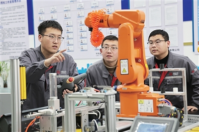“我是高铁的守护者,我有责任保证每一辆高铁都能安全运行。高铁焊缝打磨机器人技术是一个不断发展的领域,我必须不断学习,才能跟上步伐。”李子禹虽然斩获了一个个荣誉,完成了一次次攻关,但是李子禹始终没有停下继续学习和创新的脚步。李子禹先后自学了机器人技术、虚拟仿真技术、PLC等技术,也对数字孪生技术等引入工厂的新知识下了很大功夫。他毫无保留地把参加历次竞赛的收获分享给工友们,帮助大家共同提升;同时将自己在潜心钻研技术之时的学习收获运用到实际生产当中,在省部级期刊《华东科技》,以第一作者发表《试论大数据时代的人工智能范式》等多篇论文,《外接工具连接装置及工业机器人》《矫形装置》等获国家授权专利。