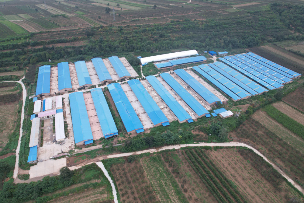 陕西省潼关县欧家城村占地120亩的肉鸭养殖场航拍照片。(受访者供图)