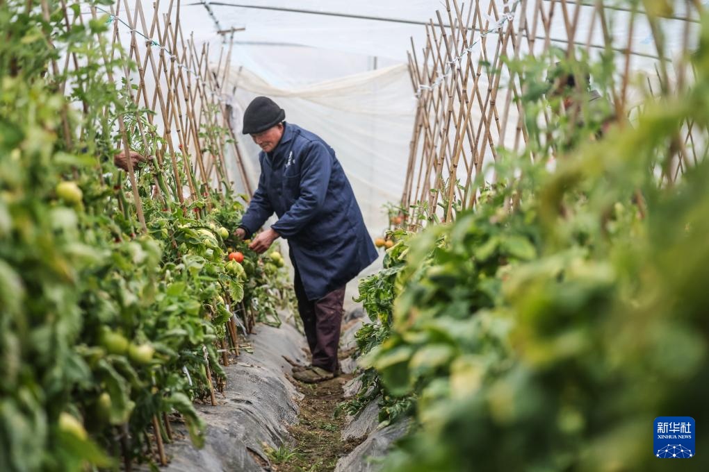 2月5日,在慈溪海通时代农业园的蔬菜大棚内,工人给西红柿疏枝修剪。该农业公司拥有核心基地1185亩,1964平方米智能温室和14674平方米连栋大棚以及配套的标准大棚11.67万平方米,近期有西兰花、大白菜、小青菜、番茄、草莓等蔬菜水果集中上市,供应春节节日市场。
